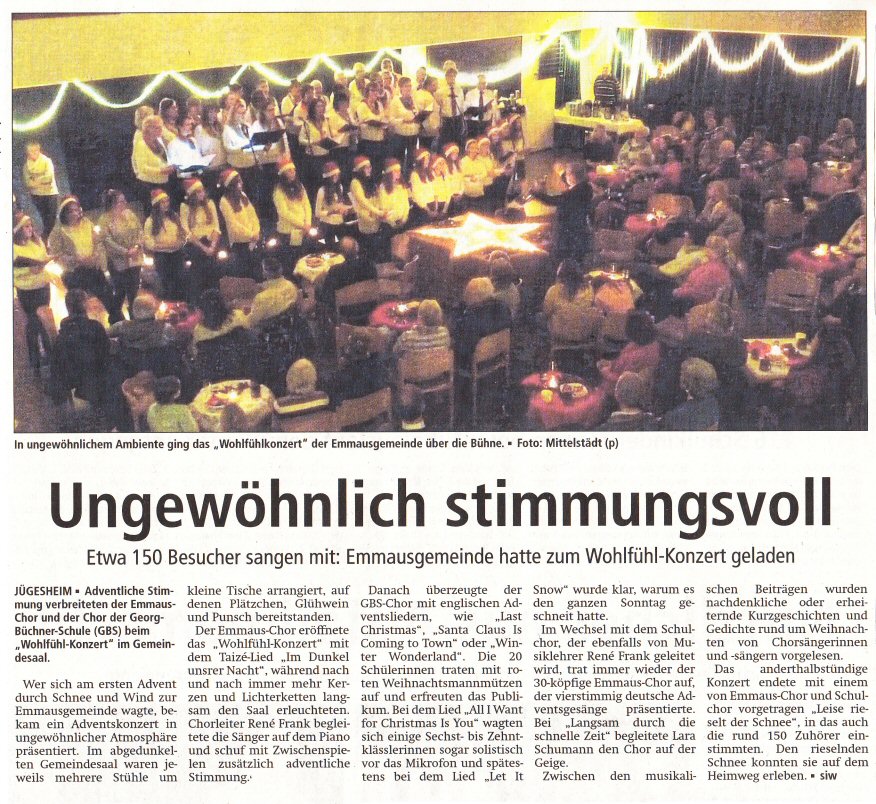 Tageszeitung "Offenbach Post" am 05.12.2017 über das Chor-Konzert "Advents-Feeling" vom 1. Advent 2017: