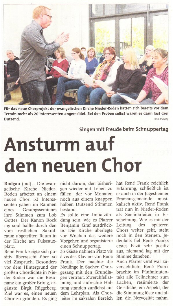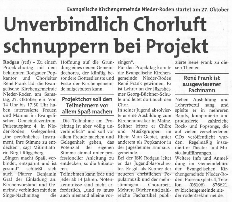 Wochenzeitung "Rodgau Post" am 11.10.2018 über den Chorworkshop 2018 in Nieder-Roden: