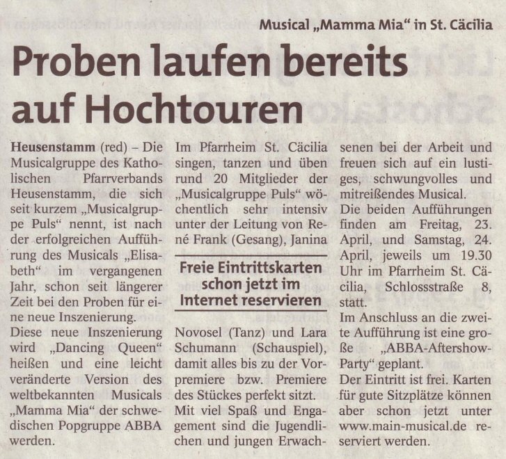 über die Musical-Inszenierung "Mamma Mia/Dancing Queen":