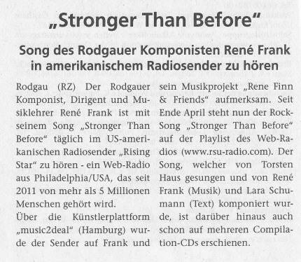 Wochenzeitung "Rodgau Zeitung" am 21.05.2021 zu dem US-Radio-Play von "Stronger Than Before":
