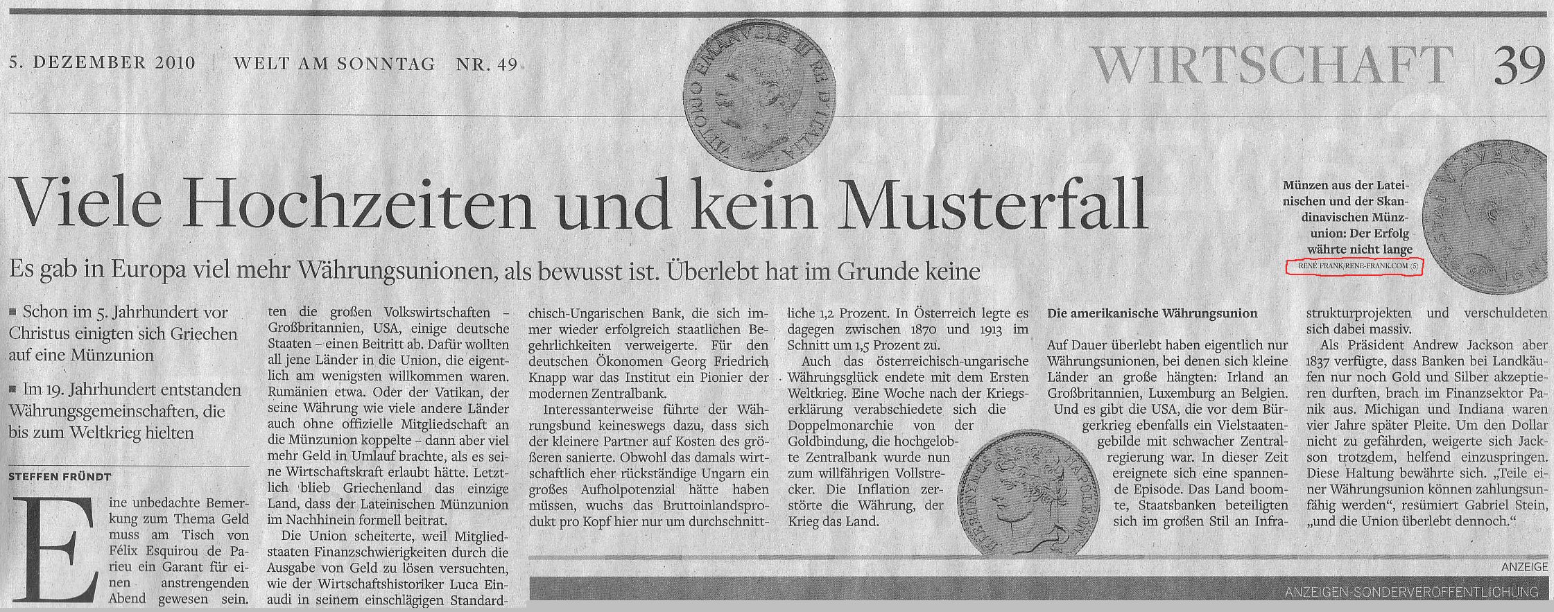 im Silberhandel. Deshalb wurde die Lateinische Münzunion gegründet. Die 15